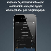 Вы можете синхронизировать всех друзей, избранных друзей, друзей из избранных списков, только найденных в телефонной книге и только друзей с телефонами.