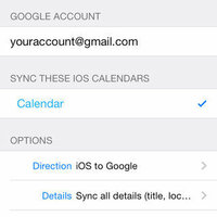 Just install SyncCal, enter your Google Calendar account, select which calendars should be synced and tap "Start". Afterward it will copy the selected calendars into new calendars in Google Calendar. It will also automatically keep them up-to-date by using iOS7/8's background refresh.