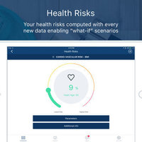 Your health risks for cardio-vascular, metabolic syndrome, and type 2 diabetes are computed with every new data. Parameters help you quickly see the health benefit of various lifestyle changes like “what if I stopped smoking?”.