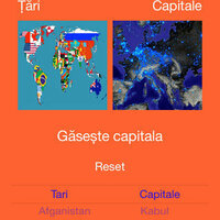 În secțiunea "Exersează" te antrenezi să găsești capitala fiecărei țări, iar în secțiunea "Joacă" iți testezi cunoștințele acumulate.