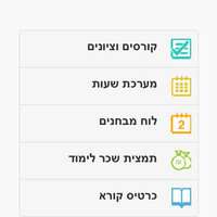 מידע עדכני: קורסים וציונים, מערכת שעות, לוח מבחנים אישי, תמצית שכר לימוד, כרטיס קורא בספריות