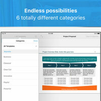 Templates for Keynote Pro is the ultimate Add-On for Apple's famous Keynote application on the iPad and iPhone. With over 35 carefully designed Keynote Templates, including more than 1250 slides, you are definitely ready for your next presentation. Export every template quick and easy to your Keynote app and start working on your presentations in just a few seconds.