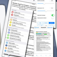 The magic about it is, that you have all documents for your project in one app, side by side, without additional downloading times accessible. Swipe back and forth or use the well-arranged document overview to access texts, notes, Office documents, PDF files and other drafts you need for your writing process.