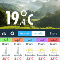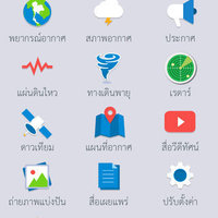 The application that is reporting weather in Thailand consists of current weather conditions, the forecast weather, storm tracks, earthquake, announcement, media of weather, weather document, radar, satellite photos, pressure maps and weather reports with photos by yourself.