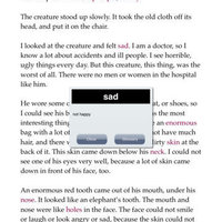 He is not beautiful. His mother does not want him, children run away from him. People laugh at him, and call him 'The Elephant Man'.