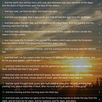 In the beginning, God created the heavens and the earth. The earth was without form and void, and darkness was over the face of the deep. And the Spirit of God was hovering over the face of the waters. And God said, “Let there be light,” and there was light. And God saw that the light was good…