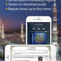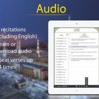 * 8 different recitations including English (by Imam Benjamin Bilal) and by great Arabic reciters like Maher Al-Muaiqly, Said Al Ghamdi, Abul Basit, Muhammad Ayyoub and Muhammad Al-Minshawi.