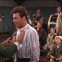 Harold Hill poses as a boys' band leader to con naive Iowa townsfolk.