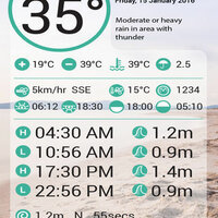 The TideSA application focuses on current tidal conditions around the world. 3 day forecast on the time of the High Tides and Low Tides, Temperature, when the sun and moon will rise or set, wind velocity and wind temperature, water temperature,