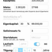 • Es kann eine jährliche Steigerungsrate für die Mieteinahmen eingegeben werden.