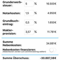 • Welche Überschüsse ergeben sich vor und nach Nebenkosten?