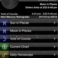 * Moon phases and upcoming Mercury retrograde periods are placed on the home screen for easy reference.