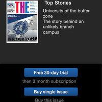 Access to THE's latest news content is free – simply tap the button at the top left of the app's home screen and select Latest News to display all the current content. To read magazine content, you will need to purchase the issue you wish to view. Simply select the issue you require, tap to buy and your purchase will be processed through your iTunes account. Note that in-app purchases only entitle you to read magazine content within the THE app – you will not receive access to premium content on the THE website. For any queries concerning in-app purchases, please email membership@timeshighereducation.com, or call 0345 521 7111 (UK) or +44 203 194 3164 (international).