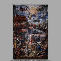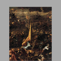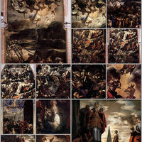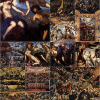 Tintoretto (born Jacopo Comin, late September or early October, 1518 – May 31, 1594) was an Italian painter and a notable exponent of the Renaissance school. For his phenomenal energy in painting he was termed Il Furioso. His work is characterized by its muscular figures, dramatic gestures, and bold use of perspective in the Mannerist style, while maintaining color and light typical of the Venetian School.
