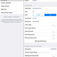 TinyTERM Plus for iOS provides secure SSH, SSL and telnet wireless access using exact terminal emulation for 21 terminal types, including IBM TN3270E, TN5250, VT420, Wyse 50/60 and ADDS. Very easy to use for data entry in IBM and UNIX environments.