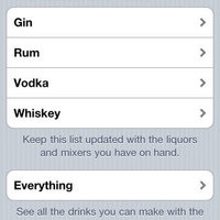 This innovative feature allows you to maintain a list of spirits (and mixers) you have and shows you what you can make with them.