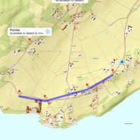 With pointer tool you see distance to the point. You can also see the estimated altitude of the selected place.