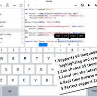 It is a development tools to touch the code. When you couldn’t use the computer, you can synchronize the code from the FTP, SFTP, SVN, and synchronize to the server after modified quickly. The development tools can highlight error code for real-time , can run the latest version of nodejs, and also can log on SSH to run the shell. If you are a web front programmer, you can run a server and use a browser to view the modified results for real-time.