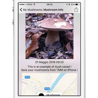 Choose your Mushrooms from camera or photo library and Track My Mushrooms add to your database the image and some relevant information ( the position on map, date and time ), then add your note and save your Mushrooms !