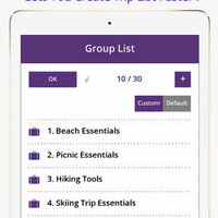 • Customize group list option enable you to add any items into a group as your preferences so that you can reuse the group in any new travel list. E.g. Camping group list, Daily use group list……
