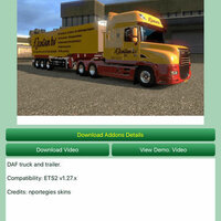 This app contains Truck Design Addons of Euro Truck Simulator 2, and all the addons can be downloaded without further charge or periodic subscription. With the addon screenshots, videos and descriptions, you will be able to find out whether the time and money needed is worth to backup the game, download and install the addons.