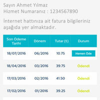 • Faturalarınızı sorgulayıp ödemelerinizi gerçekleştirebilirsiniz.
