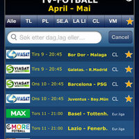 I den betalte versjonen for du sorteringsmuligheter og kan f.eks. velge å vise bare kamper fra Premier League, bare fra Tippeligaen eller f.eks. bare topkamper.