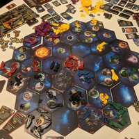 Twilight Imperium (Fourth Edition) is a game of galactic conquest in which three to six players take on the role of one of seventeen factions vying for galactic domination through military might, political maneuvering, and economic bargaining. Every faction offers a completely different play experience, from the wormhole-hopping Ghosts of Creuss to the Emirates of Hacan, masters of trade and economics. These seventeen races are offered many paths to victory, but only one may sit upon the throne of Mecatol Rex as the new masters of the galaxy.