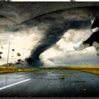 he house rips apart piece by piece. A bellowing cow spins through the air. Tractors fall like rain. A 15,000-pound gasoline tanker becomes an airborne bomb. A mile-wide, 300 miles-per-hour force of total devastation is coming at you: Twister is hitting home.