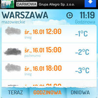 - prognozy temperatury i zachmurzenia w przedziałach trzygodzinnych.