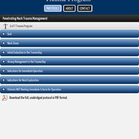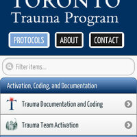 The U of T Trauma Protocols is a multiplatform- and web-app created to disseminate the University of Toronto's trauma guidelines in a convenient, easily-accessible manner. The guidelines were developed through input from Trauma Team Leaders in the Departments of Surgery and Emergency Medicine at the University of Toronto. They are designed to be informative and to provide some direction for housestaff who are becoming familiar with the care of the injured patient.