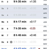 Set target hours individually for weekdays and record leave, public holidays, sick leave, and compensatory time. You can even set arbitrary target hours for each calendar day.