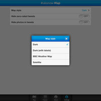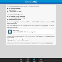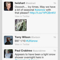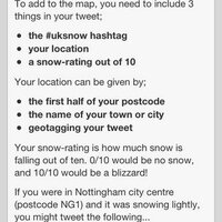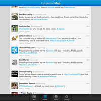 UK Snow Map uses #uksnow tweets to draw an up-to-the-minute map of where it is currently snowing in the UK.