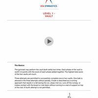 USA Gymnastics Women's Junior Olympic Compulsory Program for 2013-2021, which includes routine descriptions with the full text, interactive illustrations and videos of each of the routines.