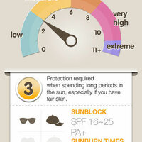 You can see recommended protection, required equipment, sunblock information and sunburn times.