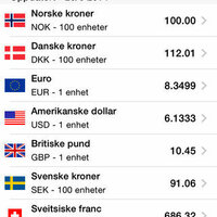 This is a Norwegian version of the topselling Danish app; Valutakuser. This App is showing the exchange rates to 156 different currencies with Norwegian kroner (NOK) as base currency.