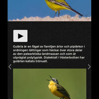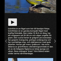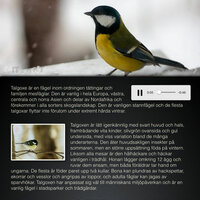 Appen innehåller information om våra vanligaste fåglar. Varje fågel beskrivs i text, med bilder och med deras läten. Allt så att du skall kunna se vilka gäster du har i trädgården eller som du stöter på i skog och mark. Appen består av en översikt samt en sida för varje fågel. Översikten är ett smidigt sätt att försöka avgöra vilken fågel det är du ser. Du kan naturligtvis också bläddra dig fram och tillbaka från fågel till fågel precis som i en bok. På vilken sida som helst så kan du dubbeltrycka på skärmen så får du fram en snabbnavigering längst ner där du enkelt tar dig en titt på någon annan fågel. Söker du mer information finns längst ner på sidan alltid en länk till Svenska Wikipedia.