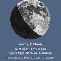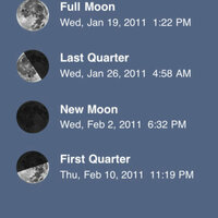 The date/time can be changed by tapping on the calendar icon in the toolbar. Incrementally move a day, an hour, a minute or a week in the future or the past. Arbitrarily jump to any date or time, years in the future or the past. Changing the date allows one to determine when a sunset or full moon will occur in the future or the past.