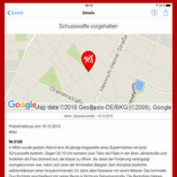 "Verbrechen" zeigt aktuelle und archivierte polizeibekannte Vorfälle in Ihrer Umgebung. Diese Delikte sind wirklich passiert! Abdeckung: Deutschland, Österreich und Schweiz.