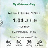 VeryDiab offers several display modes of your self-monitoring diary. Either as a complete history of all the information entered, either as a classic book the same as paper, either in the form of graphs. It also tells you the statistics typically require doctors. It even calculates a theoretical value your Hb1Ac (glycated hemoglobin). You may mail your diary and your self-monitoring data directly to your doctor.