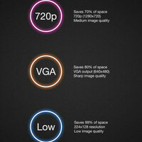 - Support 720p, VGA and low resolution compression.