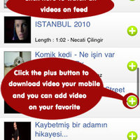 -Click the plus button to download video your mobile and you can add video on your favorite