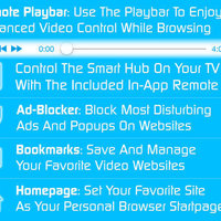 * Remote Playbar: Use the Playbar for advanced video control while browsing, including video scrubbing, forward, rewind, play, pause, stop. The playbar works on all Samsung Smart TVs and Blu-ray Players. You can also use the included TV Remote for basic video control (play, pause, stop, forward and rewind videos) and navigating in Samsung Smart Hub. The TV Remote currently works on 2010 - 2013 TVs.