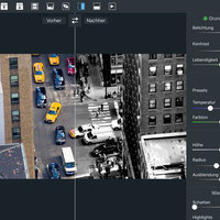 + Real-time previews, color histograms, clipping previews and split modes for comparison.