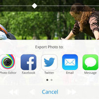◆ In Video Edit mode, set the begin and end points to trim and render the video at a new rate. The video is saved to camera roll from where it could be posted to YouTube or Facebook.