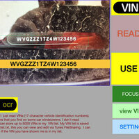 Read VIN (vehicle identification number) from the windshield of a vehicle with OCR on you iPhone or iPad. The app has an internal list of VIN numbers stored in a .CSV file called 'VINlist.csv' you can edit this list using iTune FileSharing. The list is formatted as 'VIN number','date','comment' . You can set the app to keep the image of the VIN and you can access these images via iTune FileSharing.
