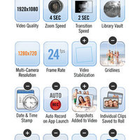 Import clips, add transitions, overlay snapshots and titles, set in/out points, split clips and set background music while you capture the event. When the event is over, simply tap DONE and your finished movie is rendered in minutes complete with a studio intro, titles, transitions and even Hollywood-style scrolling credits.
