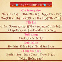- Chức năng xem ngày kén giờ : Hiển thị thông tin chi tiết của từng ngày về Giờ Hoàng Đạo, Tiết khí, Tuổi Xung, Xuất hành, Ngày hoàng đạo/hắc đạo, Ngày Tam Nương, Nguyệt kỵ, Bình Trực, Bình Sao….