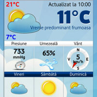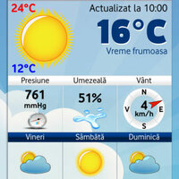 Vodafone Meteo aduce pe telefon informatii furnizate de Administratia Nationala de Meteorologie despre starea actuala a vremii si prognoza pe urmatoarele trei zile, precum si informatii despre presiunea si umiditatea atmosferica si viteza vantului. Aplicatia “Vodafone Meteo” iti permite sa afli informatii meteorologice in functie de zona in care te afli folosind functia de localizare GPS a terminalului utilizat. In acest scop iti vor fi prelucrate datele de localizare, furnizate de modulul GPS. Daca nu-ti doresti prelucrate datele de localizare, poti dezactiva functia de GPS a terminalului utilizat si poti sa alegi manual locatia pentru care doresti sa primesti informatiile meteo.