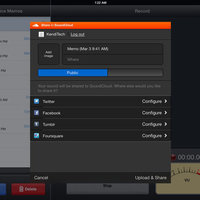 Record unlimited, high quality audio with Voice Memos for iPad using the built-in microphone, your headset, or an external mic. Voice Memos can even continue to record while you're using other apps.